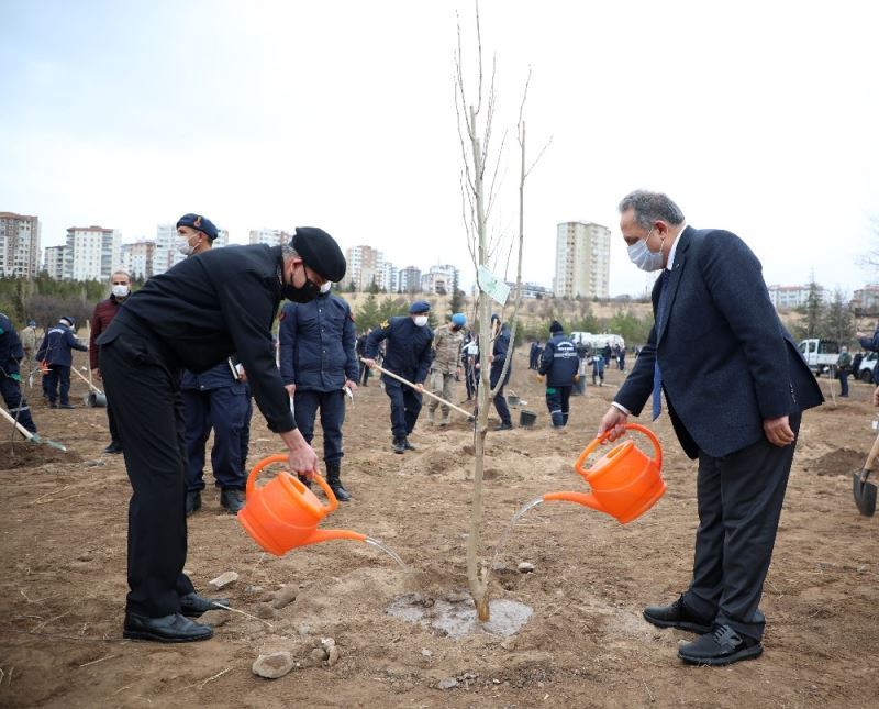 Talas Belediye Başkanı Mustafa Yalçın, İl Jandarma Komutanı Albay Nadir Çelik ile birlikte Jandarma Şehitler Fidanlığı’na ağaç dikti.