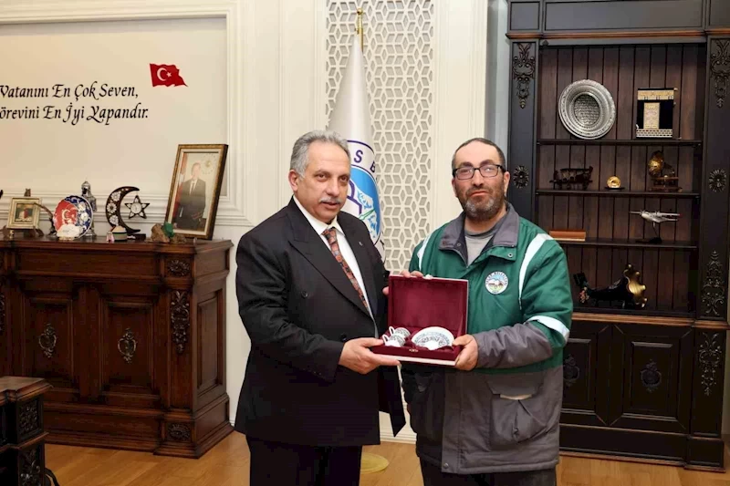 Talas Belediye Başkanı Mustafa Yalçın, parkta çalışırken bulduğu yüklü parayı polise teslim eden belediye personeli Yüksel Soylu’yu makamında ağırladı.