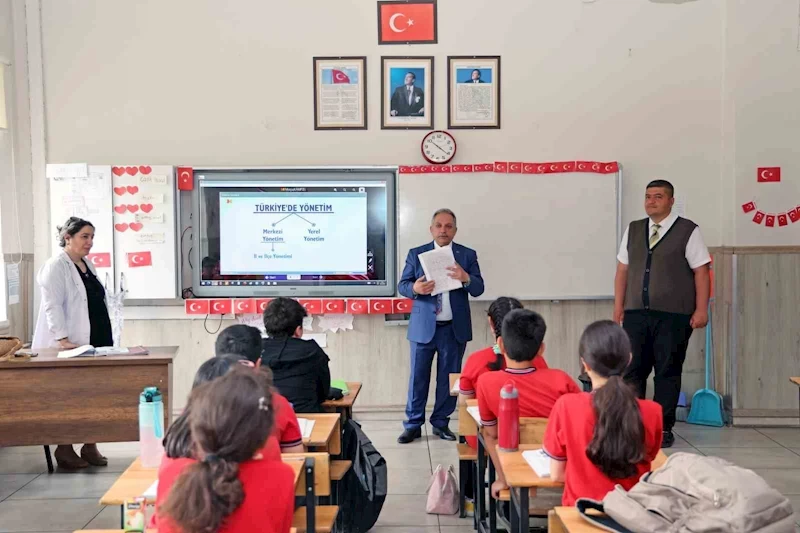 Talas Belediye Başkanı Mustafa Yalçın, Talas Derviş Güneş Ortaokulu öğrencilerinin daveti üzerine ‘Türkiye’de Yönetim’ konulu derse konuk olarak yerel yönetimler hakkında bilgiler verdi.