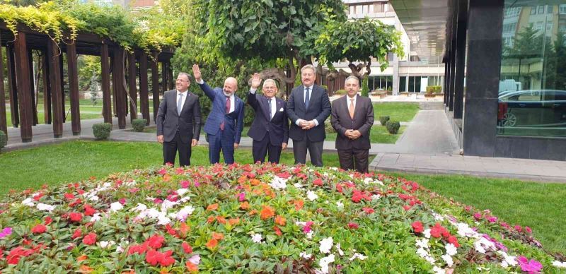 Başkanlar, Büyükşehir Belediyesi bahçesinde bir süre sohbet edip, günün anısına hatıra fotoğrafı da çektirdi.