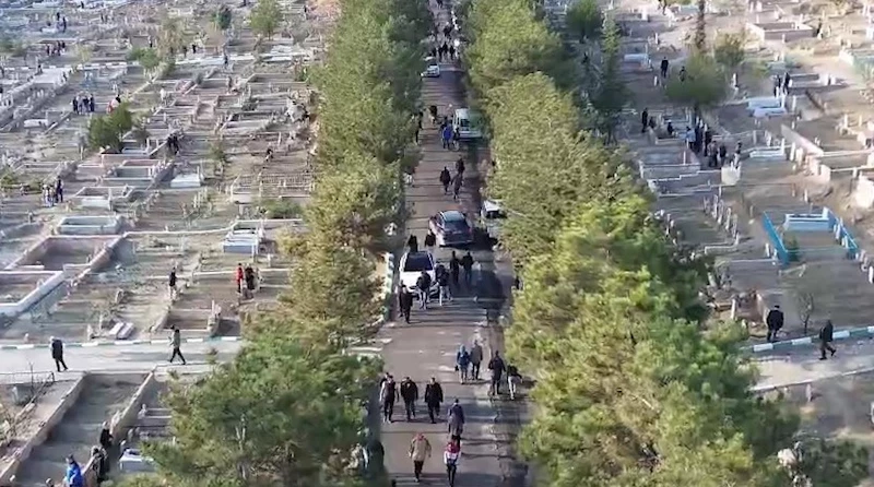 Ramazan Bayramı’nda vatandaşlar sabah saatlerinden itibaren mezarlık ziyareti yaptı. Yeşilhisar ilçesinde mezarlıklara giden vatandaşlar Kuranı Kerim okuyarak dualar etti. Mezarlıklarda oluşan yoğunluk, dron ile görüntülendi.
