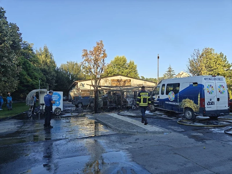 Kayseri’nin Kocasinan ilçesinde meydana gelen yangında belediyenin temizlik araçları küle döndü.