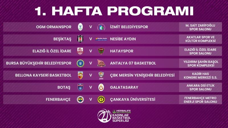 Türkiye Kadınlar Basketbol Süper Ligi’nde yeni sezon fikstürü belirlendi. Bellona Kayseri sezonu iç saha maçıyla açacak.