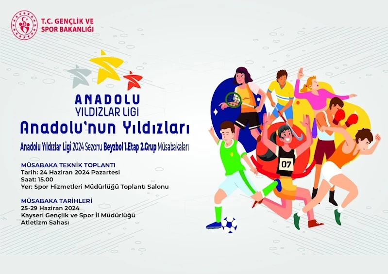 2024 Anadolu Yıldızlar Ligi Beyzbol 1. Etap 2. Grup Müsabakaları 25-29 Haziran 2024 tarihleri arasında Kayseri’de yapılacak.