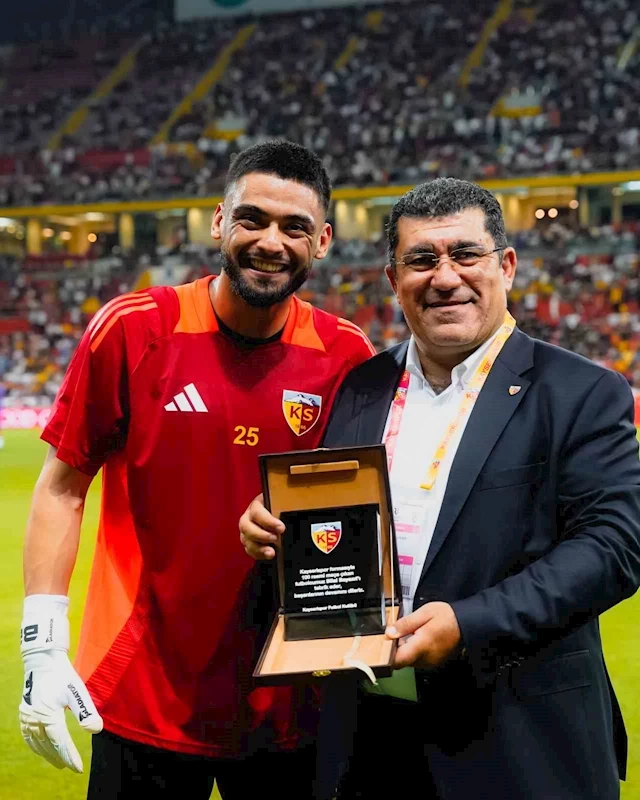 Galatasaray maçı öncesi Kayserispor Başkanı Nurettin Açıkalın; sarı kırmızılı takımda 100. maçına çıkan oyuncusu Bilal Bayazıt’a üzerinde ismi yazılı 100 numaralı forma ile plaket hediye takdim etti.