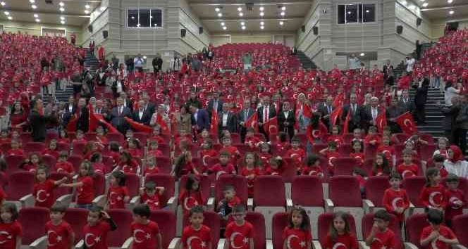 Erciyes Kültür Merkezi’nde (EKM) düzenlenen konserde 9 anaokulundan bin 200 öğrenci, 18 idareci, 63 öğretmen ve 60 stajyer öğrencinin görev aldığı koro şarkılarını coşkuyla seslendirirken, protokol üyeleri de ellerinde bayraklarla şarkı söyleyen çocuklara eşlik etti.