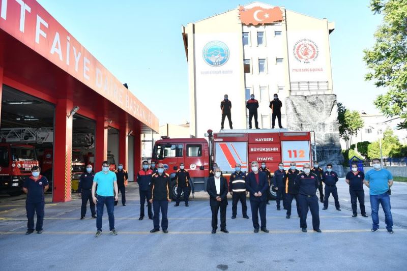 Büyükşehir Belediye Başkanı Dr. Memduh Büyükkılıç, Büyükşehir Belediyesi İtfaiye Daire Başkanlığı’nı ziyaret etti. Kayseri İtfaiyesine bayram ziyaretinde bulunan Başkan Memduh Büyükkılıç, kolonya ve şeker ile Daire Başkanı Mustafa Metin Kızılkan ve tüm itfaiye personelinin bayramını kutladı.