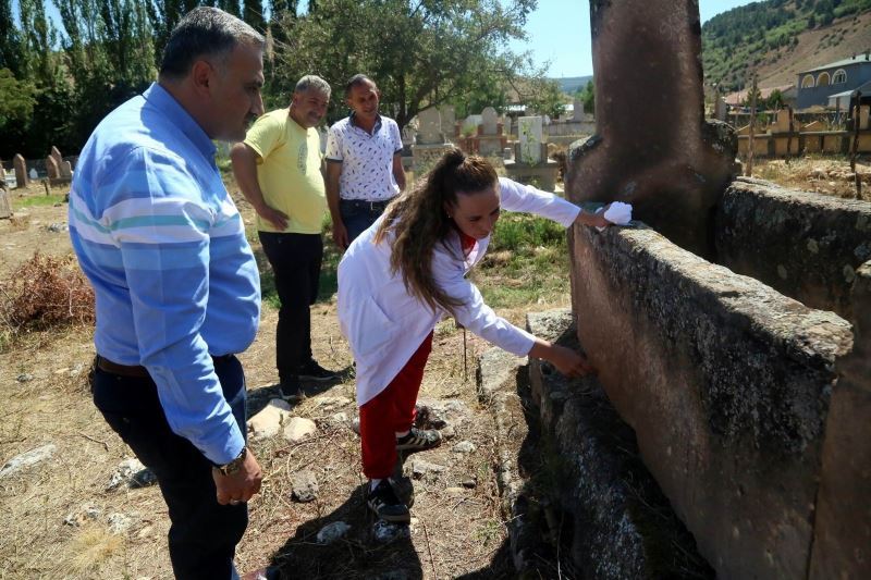Çevre ve Şehircilik İl Müdürlüğü tarafından ’anıt ağaç’ olarak tescillenen ağacın içinde bulunan iki adet ve çevresinde bulunan 570 adet mezarda 11 kişilik ekibiyle birlikte çalışma başlatan Erciyes Üniversitesi Sanat Tarihi Doç. Dr. Aslı Sağıroğlu Arslan mezar taşlarının bir toplumun tapu senedi taşıdığını belirterek; “Araştırmalarımızda anladığımız kadarıyla Türkmenler Develi’yi fethetmeden önce buraya yerleşmişler. Bu mezarlıkta menhir geleneğine göre dikilen büyük blok taşlar ve kütle halinde oyulmuş çerçeveli ilginç mezar taşları da bulunmaktadır. Oğuz boylarından Salur boyu yanında Alka-evli, Eymur, Bayındır, Kargın boylarına ait tamgalı mezarların bulunduğu alanda ilk olarak belgeleme, fotoğraflama röleve çalışması yaptık ve daha sonra temizleme işlemlerine geçeceğiz. Çalışmalarımızı yürütürken bizlere her daim maddi-manevi destek sağlayan Develi Belediye Başkanımız Mehmet Cabbar’a teşekkür ediyor, çalışmalarımızı en güzel şekilde tamamlamayı temenni ediyorum” açıklamalarında bulundu.