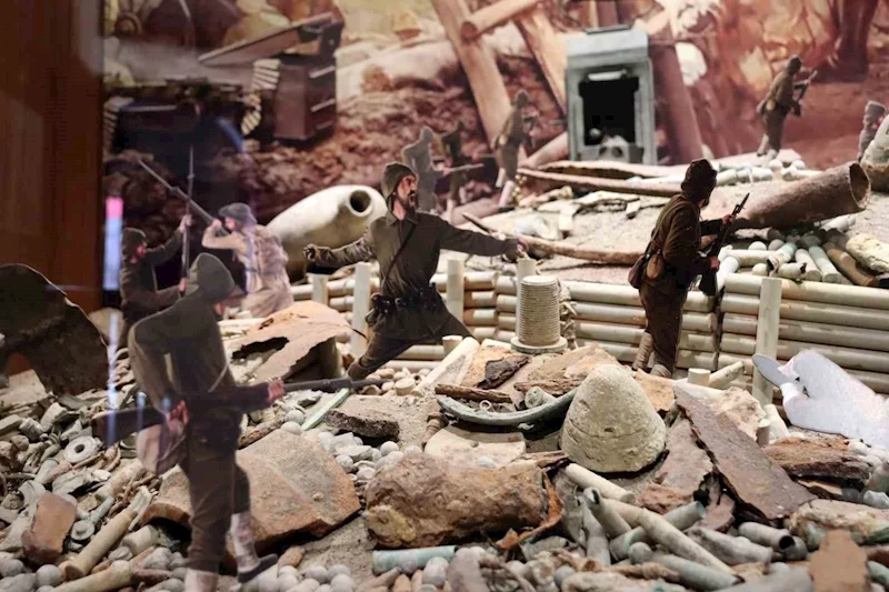 Çanakkale’de toprak altından çıkarılan savaş malzemelerinin sergilendiği Çanakkale’den Cumhuriyet’e 100. Yıl Müzesi’ne gelen vatandaşlar, savaş yıllarını yaşıyor.