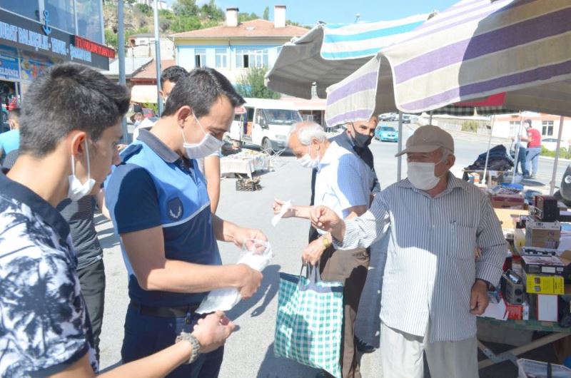 Zabıta Müdürlüğü ve Temizlik İşleri Müdürlüğü’ne bağlı ekipleri, toplum sağlığı için çalışılmalarını aksatmadan sürdürüyor. Zabıta Müdürlüğü ekipleri,mahallelerde kurulan pazarların girişinde vatandaşları maske kullanımı noktasında uyardı. Alışveriş yapan vatandaşlara ürün seçme yasağı ve üç metre kuralı hatırlatıldı. Maskesiz vatandaşlara da maske dağıtıldı. (İHA)