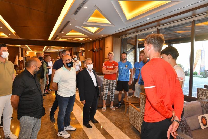 Kayseri Büyükşehir Belediye Başkanı Dr. Memduh Büyükkılıç, Erciyes’te kamp yapan Russian National Team Veledrom Bisiklet Takımı ile Belarus Sürat Pateni ve Rus Track Milli Takımı’nı konakladıkları otelde ziyaret etti.