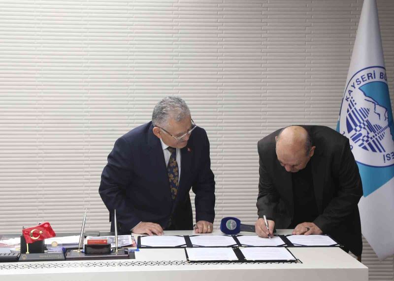 Kayseri Büyükşehir Belediye Başkanı Dr. Memduh Büyükkılıç ile hayırseverler İsmail Elcuman ve Halil Aksakal arasında Akel Cami yapımı için işbirliği protokolü imzalandı.