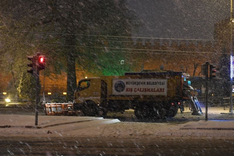 Büyükşehir, 16 ilçede gece boyu karla mücadele etti