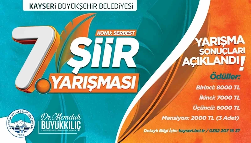 Kayseri Büyükşehir Belediyesi’nin geleneksel hale getirdiği 7’nci şiir yarışması sonuçlanırken, yarışmaya ülkenin dört bir tarafından 1200 kişi katıldı.
