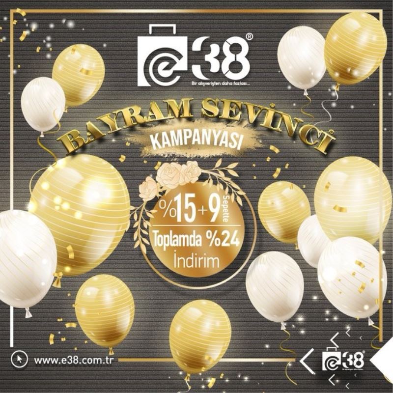 E-38 Kurban Bayramı’na özel marka ürünlerinde yüzde 15 artı sepette yüzde 9’luk indirimler olmak üzere toplam yüzde 24’lük bir indirim ile müşterilerine bayram sevincini yaşatıyor.