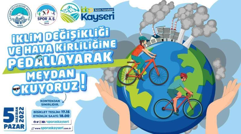 Kayseri Büyükşehir Belediyesi İklim Değişikliği ve Sıfır Atık Daire Başkanlığı ile Spor A.Ş. işbirliğiyle Dünya Çevre Günü’nde, iklim değişikliği ve hava kirliliği için farkındalık oluşturmak amacıyla 10 kilometrelik parkurda bisiklet turu düzenlenecek.