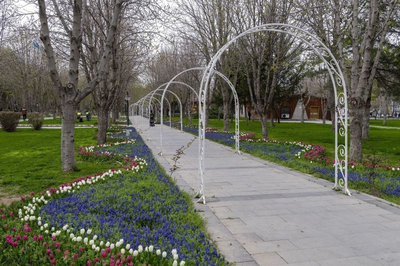 Kayseri Büyükşehir Belediyesi ekiplerinin şehrin bir çok noktasına diktiği yüzbinlerce lale soğanı ve sümbüllerin çiçek açmasıyla rengarenk, görsel bir şölen oluştu.