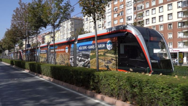Kayseri’de gün içerisinde binlerce kilometre yol yapan tramvaylar, bu seyahatleri sırasında adeta tarihe yolculuk yaparcasına şehrin tarihi değerlerini tanıtıyor. UNESCO Dünya Mirası Geçici Listesi’ne giren Koramaz Vadisi ile Kültepe Kaniş-Karum’un görselleriyle donatılan tramvayla tarihi ve kültürel mirasın tanıtımına katkı sağlıyor.