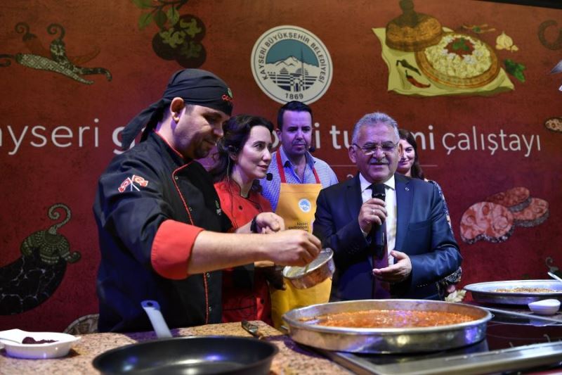 Tarihsel ve coğrafi anlamda medeniyetlerin beşiği Kayseri’de tarihi, geleneği, kültürü ve sanatı yansıtan her şeyi halka ulaştırmak adına çalışmalar yapan Kayseri Büyükşehir Belediyesi, Başkan Büyükkılıç’ın talimatları doğrultusunda geleceğe bir miras bırakarak, Kayseri’nin yemeklerini geniş kitlelere tanıtmayı hedefliyor. Şehrin gastronomik mirasını ortaya koyduğu, Gastronomi Turizm Çalıştayı ile Kayseri’nin yemek kültürünü tüm ülkeye tanıtmayı düşünen Kayseri Büyükşehir Belediyesi, lezzetin anavatanı olan Kayseri’nin sucuk ve pastırmasıyla yapılan pek çok yemeğinin yanı sıra mantı, yağlama, pöç, fırın ağzı, kurşun aşı, Develi cıvıklısı, çemen, kete, katmer, aside, nevzine, gilaburu suyu gibi yüzlerce lezzetini hazırlanan kitapla beraber sadece şehir değil tüm Türkiye öğretmeyi amaçlıyor. (İHA)