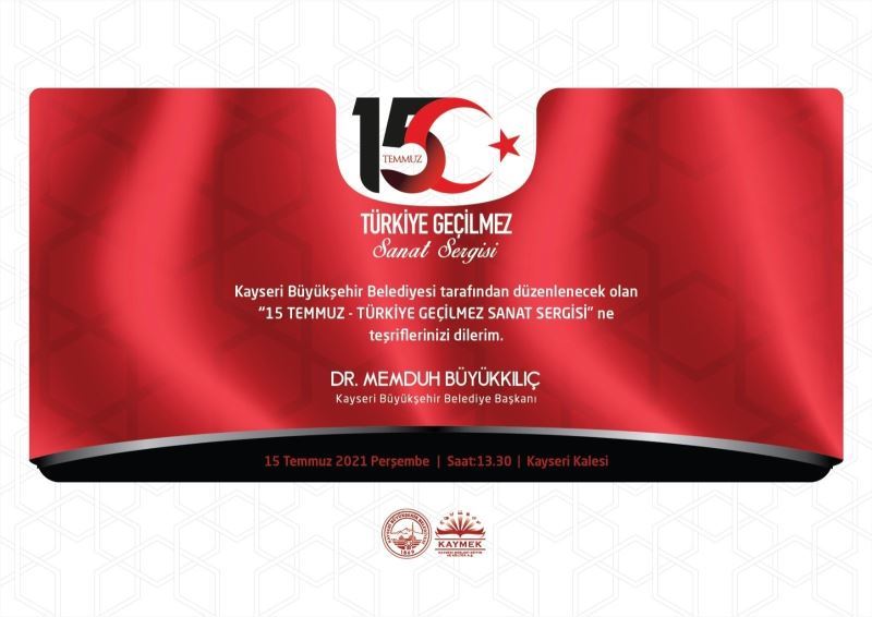 Kayseri Büyükşehir Belediye Başkanı Dr. Memduh Büyükkılıç, 15 Temmuz Demokrasi ve Milli Birlik Günü etkinlikleri kapsamında ‘15 Temmuz Türkiye Geçilmez Sanat Sergisi’ adlı çok özel ve anlamlı bir program düzenleyeceklerini duyurdu.