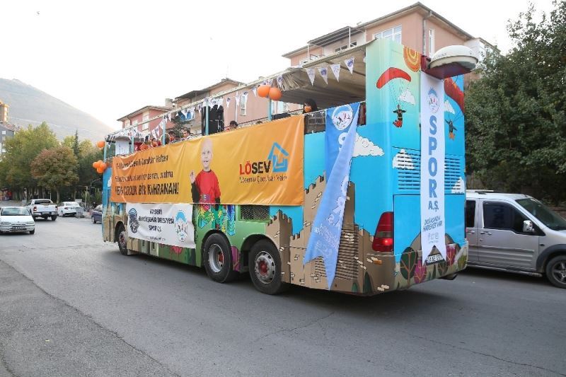 Kayseri Büyükşehir Belediyesi Spor A.Ş. 2-8 Kasım Lösemili Çocuklar Haftası nedeniyle lösemi hastalığı ile mücadele eden çocuklara destek olmak için kentte bir dizi etkinlikler yapıyor. Büyükşehir Belediyesi Spor A.Ş. ile LÖSEV’in işbirliği kapsamında, LÖSEV’in Hayatta umutlu ol sen her zaman , unutma HER ÇOCUK KAHRAMAN! #LÖSEVDEHERÇOCUKKAHRAMAN sloganları ve hashtagleri ile düzenlenen etkinlikler lösemi çocukların mahallelerine neşe kaynağı oldu. Birçok lösemili çocuğun sokağına gidilerek üstü açık otobüs, Bando Takımı ve Spor A.Ş. Etkinlik aracıyla giderek müzik eşliğinde dans gösterileri yapıp, hediyeler veriliyor. Dört gün sürecek olan etkinlik çocukların isteğine göre uzatılabilecek. Çıkılan bu güzel yolun ilk durağı ise kahraman minik Ayşe’nin oturduğu Talas ilçesi, Rüzgar Sokağı oldu. Birbirinden güzel danslar, bando takımı ve birçok etkinlik minik Ayşe’yi çok sevindirdi.