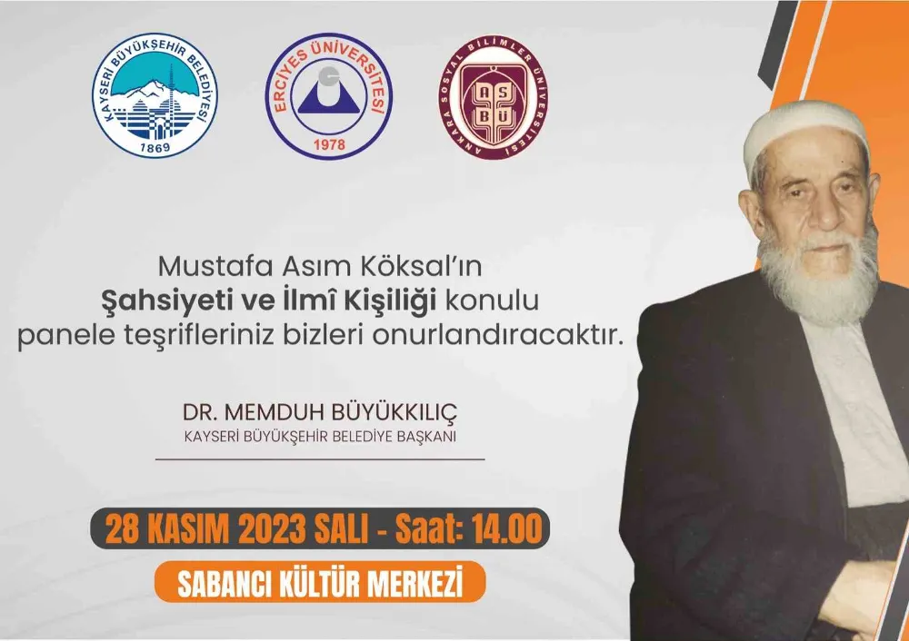 Kayseri Büyükşehir Belediyesi, Erciyes Üniversitesi ve Ankara Sosyal Bilimler Üniversitesi iş birliği ile 28 Kasım Salı günü saat 14.00’te Sabancı Kültür Merkezi’nde düzenlenecek panelde, Kayserili İslam tarihi yazarı, şair ve mutasavvıf Mustafa Asım Köksal ölüm yıl dönümünde anılacak.
