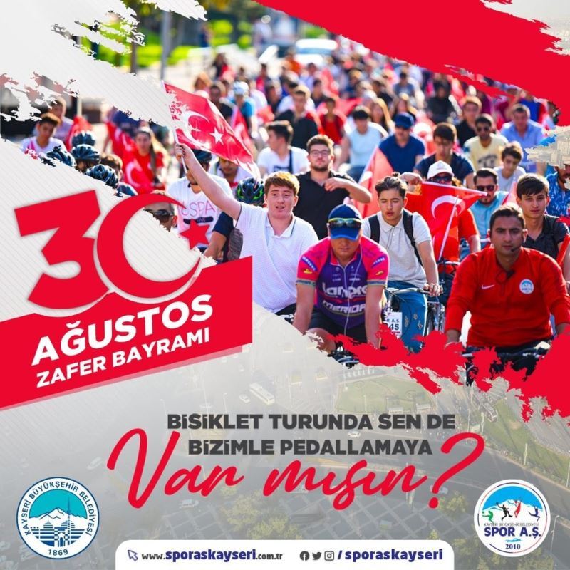 Kayseri Büyükşehir Belediyesi Spor A.Ş. birbirinden farklı etkinliklerine bir yenisini daha ekliyor. Bu kapsamda 30 Ağustos Zafer Bayramı’nda “Zafere Pedallıyoruz” sloganıyla anlamlı bir bisiklet etkinliği düzenleyen Spor A.Ş. tüm sporseverleri buluşturuyor. 30 Ağustos Pazartesi, saat 19.00’da Kadir Has Şehir Stadyumu Güney Otoparkı önünde başlayacak ve ücretsiz olacak etkinlik, saat 20.30’da Cumhuriyet Meydanı Kurşunlu Otoparkı’nda sona erecek. Korona virüs tedbirleri kapsamında düzenlenecek olan etkinlikte 10 kilometrelik güzergahta pedal çevrilecek.