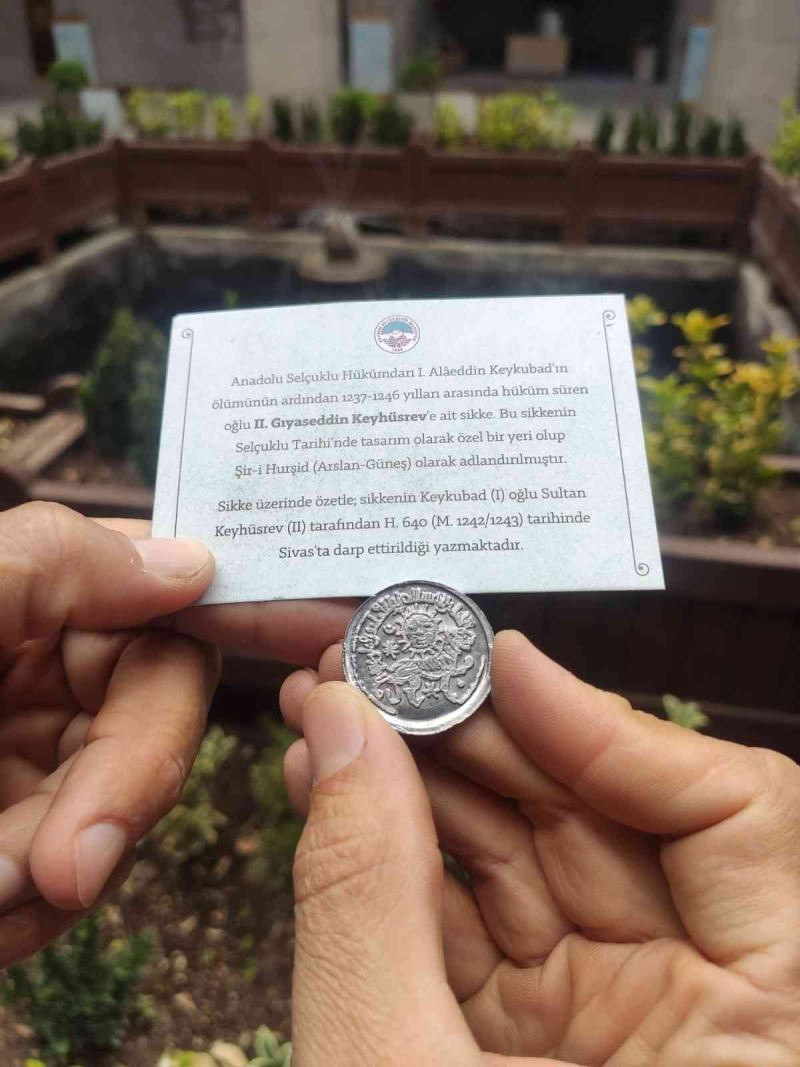 Kayseri Büyükşehir Belediyesi’ne bağlı olarak hizmet veren Selçuklu Uygarlığı Müzesi, ziyaretçilerine yönelik tarihi yeniden yaşatacak bir uygulamaya imza attı. Büyükşehir Belediyesi, müzeyi ziyarete gelen ziyaretçilerine Anadolu Selçuklu sultanlarından II. Gıyaseddin Keyhüsrev ve IV. Kılıçarslan’a ait sikkelerin birer örneğini darp ederek hediye olarak sunuyor.