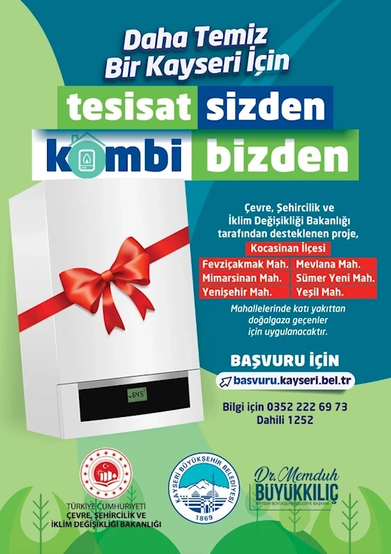 Kayseri Büyükşehir Belediyesi tarafından hava kalitesinin iyileştirilmesi için hayata geçirilen çevreci kampanya ‘Tesisat Sizden, Kombi Bizden’ projesinin ikinci etabı için başvurular 12 Ağustos’ta başladı.