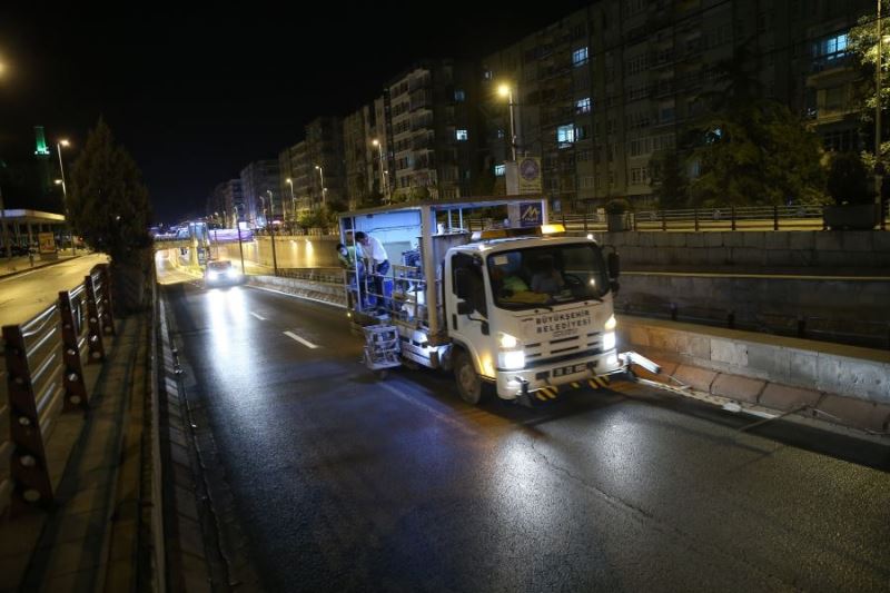 Bu kapsamda 2020 yılı içerisinde 51 bin metre soğuk yol çizgisi, 7 bin 290 metrekare sıcak termoplastik yol çizgisi, 2 bin 900 metrekare yaya geçidi yapan Büyükşehir Belediyesi ekipleri, yol çizgi çalışmalarına Fuzuli ve Tuna Caddeleri’nde devam etti.