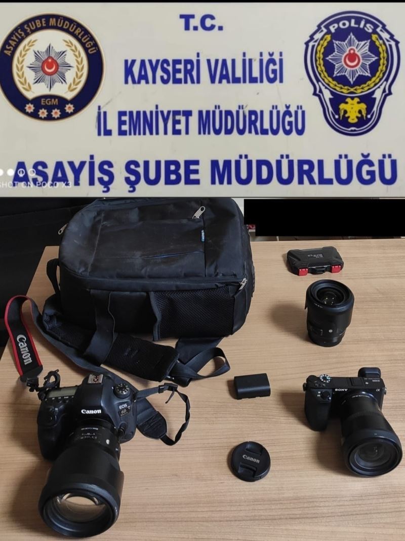 Kayseri İl Emniyet Müdürlüğü Asayiş Şube Müdürlüğü’ne bağlı Hırsızlık ve Yankesicilik Büro Amirliği ekiplerince yapılan çalışmalarda; çalınan yaklaşık 100 bin TL değerinde 2 adet fotoğraf makinesi bulundu. Olayla ilgili 2 kişi gözaltına alındı.