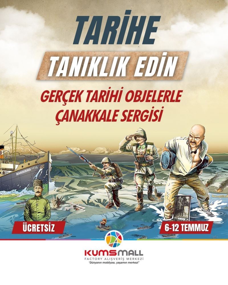 Gerçek tarihi objelerle Çanakkale Sergisi KUMSmall AVM’de açılıyor. Sergi 6 Temmuz Perşembe günü açılacak ve 6-12 Temmuz tarihleri arasında ücretsiz olarak gezilebilecek. Her türlü yokluk ve yoksulluğa rağmen yazılan destana ait objelerin, küllerinden doğan Türk Milleti’nin neler yapabileceğini gösteren eserler, Avrupa’nın en büyük karma AVM’si olan KUMSmall AVM’de düzenlenecek olan anlamlı sergi ile gösterilecek.