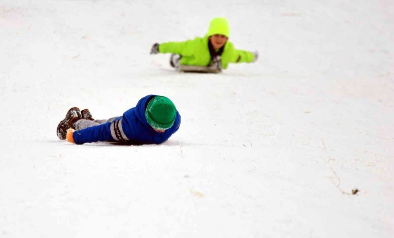 Doyasıya eğlenen çocuklar, karın tadını çıkardıklarını söyleyerek, kışı çok sevdiklerini dile getirdi.