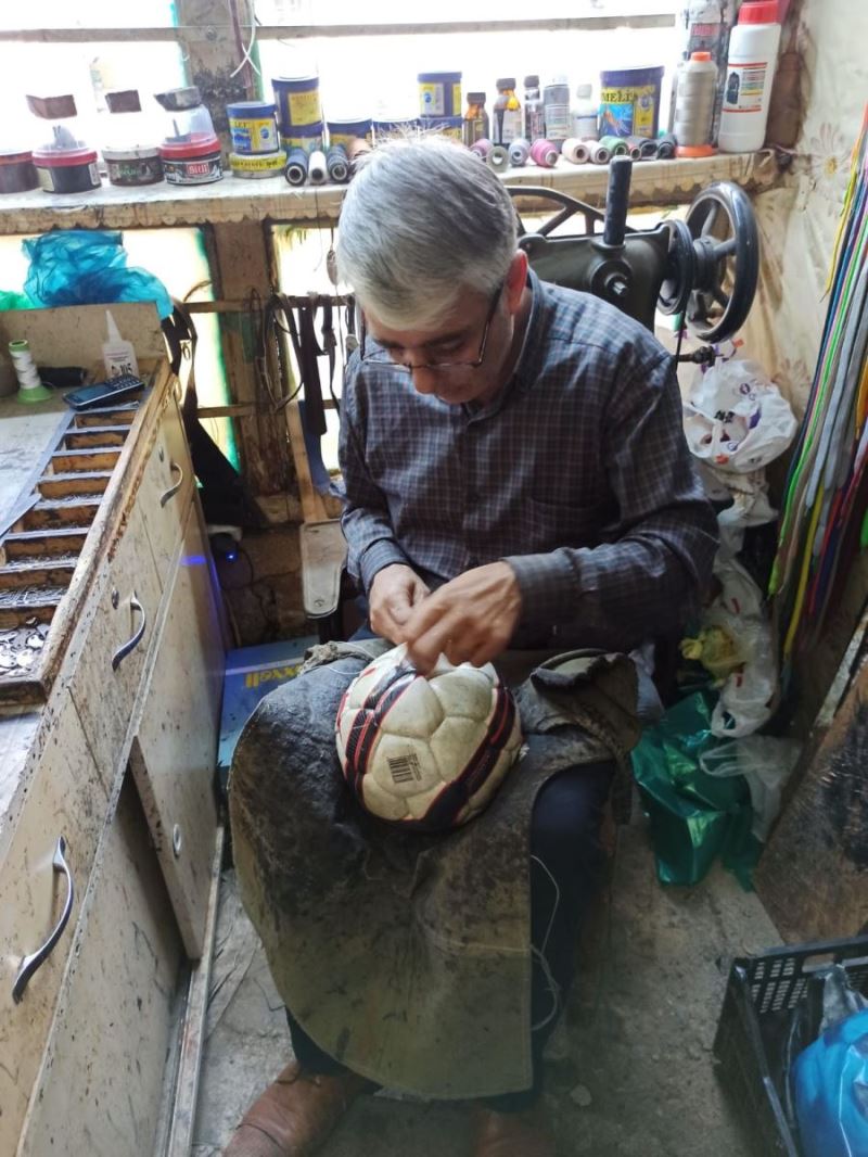 Akça, "Mahalle arasında gezdiğimde gördüğüm her futbol topunu tanırım" diyerek, ilçedeki her futbol topunun tamir için elinden geçtiğini söyledi.