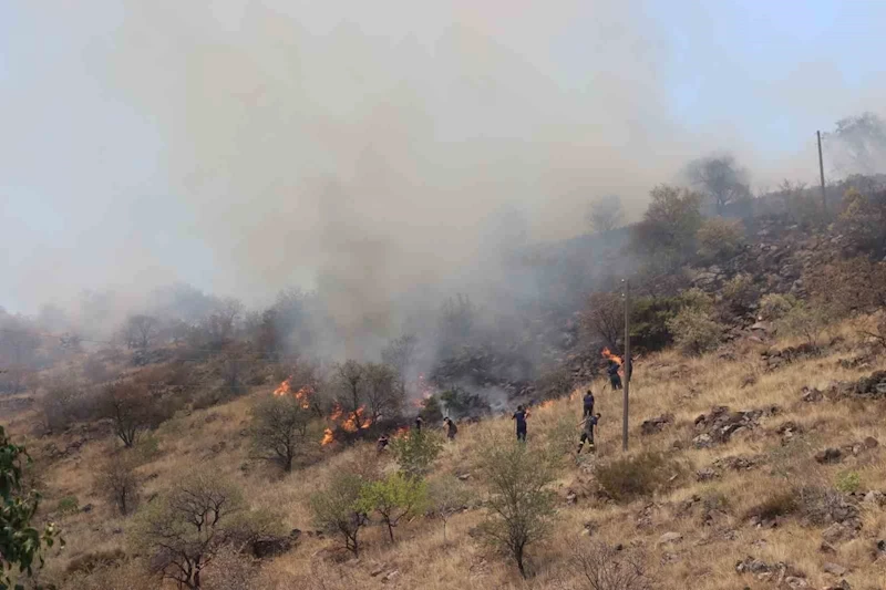Dağlık alanda yangın çıktı, ekipler yerleşim yerlerine ulaşmaması için yoğun çalışma başlattı