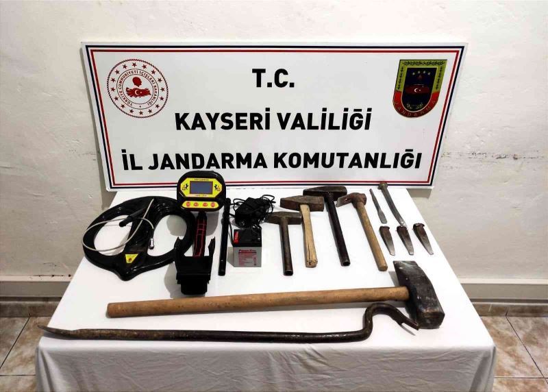 Kayseri İl Jandarma Komutanlığı ekiplerince yapılan çalışmalarda; dedektörlerle arama yapan 2 kişi suçüstü yakalandı.