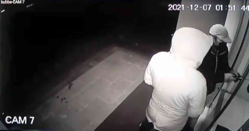 Edinilen bilgiye göre, ilçeye bağlı Yakut Mahallesi Çınarlı Sokak üzerindeki bir apartmanda meydana gelen olayda, parkın içinden gelen 2 şahıs önce otomatik kapıyı bir cisimle araladı. Daha sonra ellerinde bulunan değneğe maske bağlayan hırsızlar, maskeyi içeride bulunan kapı sensörüne göstererek açılmasını sağladı. Apartmana giren hırsızlar girişte bulunan güvenlik kamera monitörünü de çalarak geldikleri parkın içinden uzaklaştılar. Monitörü çalan hırsızlar kayıplara karışırken, pes dedirten hırsızlık anları güvenlik kameralarına saniye saniye yansıdı. Apartman sakinleri hırsızların bulunması için şikayetçi oldu.