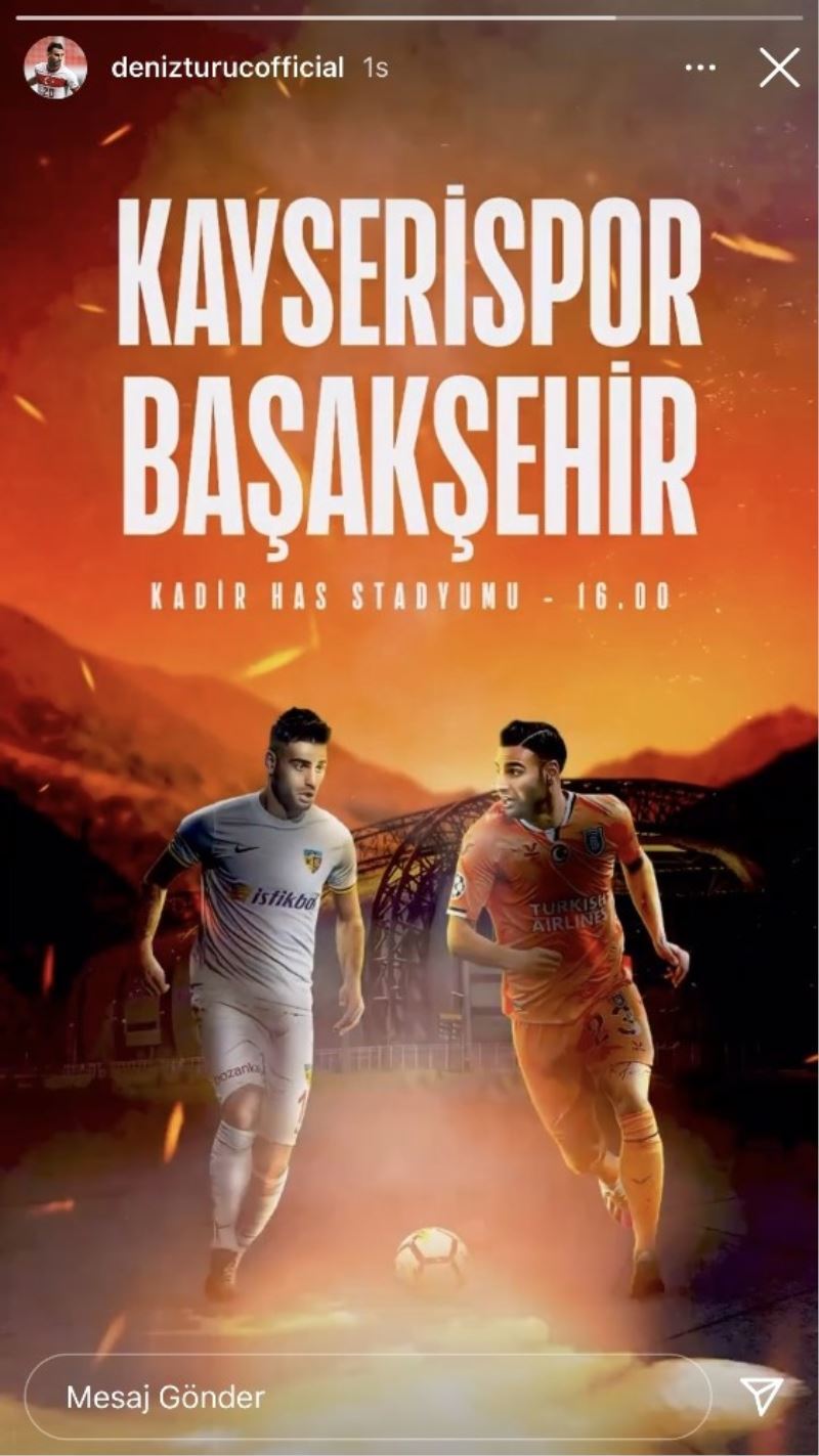 Başakşehir futbolcusu Deniz Türüç, Kayserispor maçı öncesindeki paylaşımı beğeni topladı.