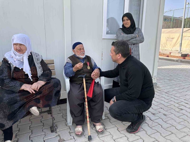 Kayseri Büyükşehir Belediyesi’nin depremin merkez üssü olan Kahramanmaraş’ta depremzedelerin barınma ihtiyaçları için kurduğu konteyner kent içerisinde ikamet eden Kıbrıs Gazisi Hüseyin İkikardeş ile depremzede vatandaşlar Başkan Büyükkılıç’a hem dua hem de teşekkür ettiler.