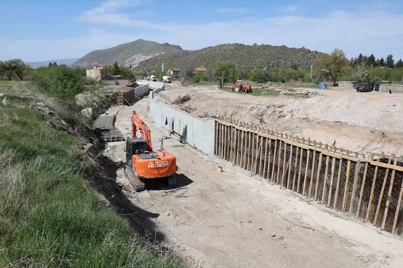 Aksu Deresi ve Lara Deresi’nin Hacılar ilçesi içerisinden Erciyes’in eteklerinden inerek Beğendik Bağları, Organize Sanayi Bölgesi’nin güneyinden geçerek Boğaz köprüye ulaştığını ifade eden Başkan Özdoğan, “Bu bütün çalışmalar, ilave projelerle birlikte 3 kilometrelik bir taşkın koruma kanalını 2024 yılında tamamlamış olacağız. Böylelikle küresel iklimdeki değişiklikler, meydana gelebilecek sel baskınları ve ani yağışlarında vatandaşımızın herhangi bir can ve mal kaybına uğramasını engellemiş olacağız” dedi.