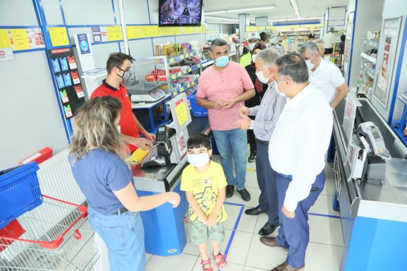 Develi Kaymakamı Murat Duru, Develi Belediye Başkanı Mehmet Cabbar, İlçe Sağlık Müdiresi Fatma Anteplioğlu ile birlikte sebze-meyve pazarı, kafeler, marketler ve iş yerlerine ziyarette bulunarak alınan tedbirlere hassasiyetle uyulması için hatırlatmalarda bulundu. Maske, sosyal mesafe ve temizlik kurallarına uyulmasının hem hayati hem de çok kolay olduğunu ısrarla vurgulayan Kaymakam Duru “Şimdi eğer bu tedbirleri uygulamazsak ilerde daha ağır tedbirleri uygulamaya mecbur kalabiliriz. Sadece sizlerin tedbirleri uygulaması yetmiyor aynı zamanda tedbirleri uygulamayanları da güzelce uyarmamız gerekmektedir” dedi. Salgının artış gösterdiğini belirten Cabbar Başkan “Hem kendi sağlığımızı hem de sevdiklerimizi korumanın en kolay yolu olan maske, sosyal mesafe ve temizlik kurallarına uymamız büyük önem arz etmektedir” dedi. (İHA)