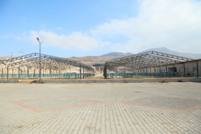 Develi’de canlı hayvan pazarının kışın ve yazın olumsuz hava şartlarından etkilenmemesi için üstünün kapanma çalışmaları başladı.