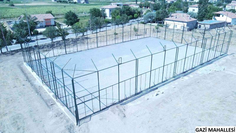 Develi’de kırsal mahallelerdeki halı saha yapım çalışmaları devam ediyor