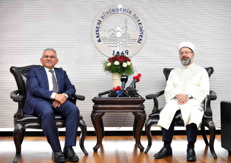 Büyükkılıç’a çalışmalarında başarılar dileyen Erbaş, “Yapmış olduğunuz çalışmalarda sizlere de başarılar diliyorum. Yakından takip ediyoruz, hakikaten müftülüğümüzle, hocalarımızla çok irtibat halinde çalışıyorsunuz. Destekleriniz son derece sevindirici. Belediyeciliği sadece altyapı çalışmaları olarak görmeyen, aynı zamanda belediyeciliği bir medeniyet faaliyeti olarak gören kardeşlerimizdensiniz, başkanlarımızdansınız. Bunun için de sizlere özellikle teşekkür ediyorum. Rabbim yar, yardımcınız olsun” ifadelerini kullandı.