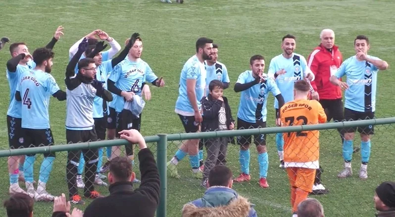 Son oynadıkları Kocasinan Yemlihaspor maçını 3-0 kazanarak liderliğini perçinleyen Döğergücü takımı, hakemin bitiş düdüğü sonrasında galibiyet sevincini ve liderliğini sürdürmenin keyfini taraftarı ile yaşadı.