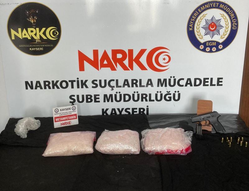 Kayseri’de polisin ’dur’ ihtarına uymayarak kaçan otomobilde narkotik köpeği ile yapılan aramalarda; piyasa değeri 750 bin TL olan 4 kilo 100 gram metamfetamin ele geçirildi.