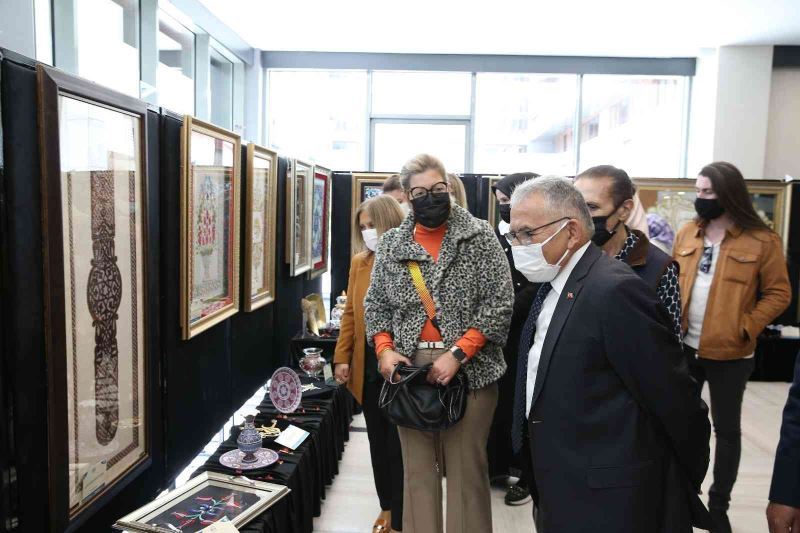 “Onun uygulamalarını, kazanımlarını sürdürmeye devam ediyoruz. Kurs verdiğimiz vatandaşların da memnuniyetlerini duyuyor, kendi ticaretlerini de geliştirdiğine de seviniyoruz, aklın yolu bir. Öyleyse e-ticareti mutlaka hayata geçirecek şekilde hatta bunun içerisine yabancı dilimizi eklemek suretiyle yurt içi, yurt dışı her yere bu konuda çalışma yapmak amacıyla gayretlerimizi sürdürelim diyorum. Erciyes Üniversitesi Güzel Sanatlar Fakültesi Dekanı Prof. Aygül Aykut da; “Kadının el emeği ile üretilmiş olan, kadın faktörünün olduğu her yer zaten güzelleşir ve orada üretim zaten kendini bulur. Doğası ve fıtratı gereği de böyledir. Kadına ve kadının ürettiklerine bu kadar değer verdiğiniz için bir kadın ve insan olarak gurur duyuyorum. Gerek genel olarak insanlık adına yaptığınız çalışmalarda hem evrensel anlamda hem de kadın temelinde yaptığınız tüm çalışmalar için sizi tebrik ediyorum. KAYMEK’lerimiz bunun çok önemli uzanan kolu. Biz de fakülte ve Erciyes Üniversitesi olarak burada bulunmaktan çok gurur duyuyoruz” şeklinde konuştu. 25 el sanatı branşı ile hazırlanmış 185 adet eserin yer aldığı ve davetlilerin ilgiyle izlediği sergi, Kayseri Büyükşehir Belediyesi Başkanlık Giriş Salonu’nda ziyarete açık olacak.