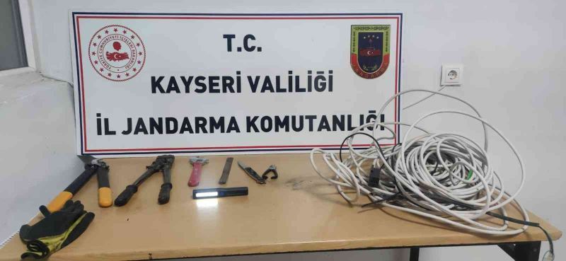 Kayseri İl Jandarma Komutanlığı ekiplerince yapılan çalışmalarda Kayseri Büyükşehir Belediyesi’ne ait çiftlikteki elektrik kablolarını kesen 3 kişi yakalandı.