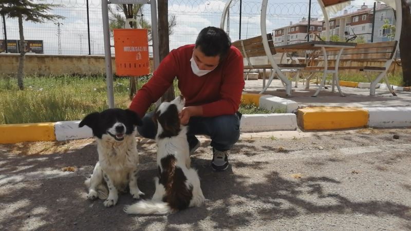 Kayseri Yeşilhisar İlçe Emniyet Müdürlüğü personeli, karayolundaki 2 sokak köpeğine sahip çıktı.