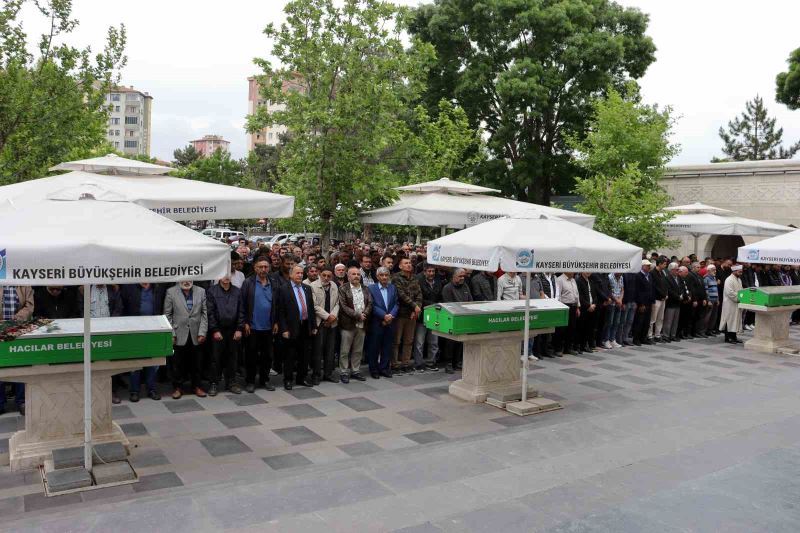 Kayseri’nin Melikgazi ilçesinde 13. kattan düşerek hayatını kaybeden anne ve 2 çocuğu, yan yana son yolculuğuna uğurlandı.